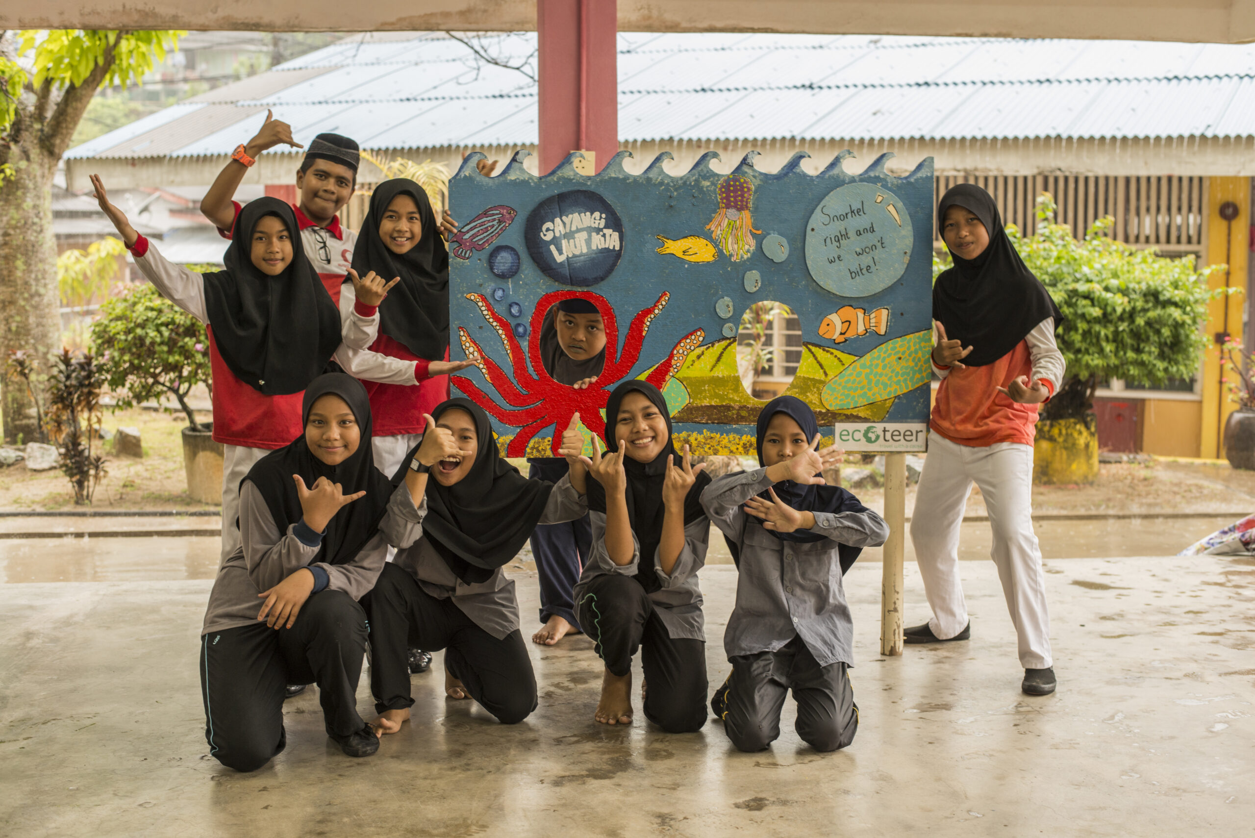 The project mostly works with the local kids through their Eco Club. Rooted in Dr Jane Goodall's Roots and Shoots programme, the Eco Club runs classes and activities with its members to promote conservation of their beautiful islands and marine lives while also improving their English.